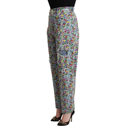 بنطلون جينز ضيق بخصر مرتفع ومزين بنقشة زهور من دولتشي آند غابانا