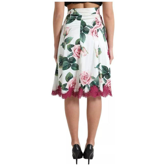 تنورة دولتشي آند غابانا الأنيقة ذات الخصر العالي والمزينة بالزهور باللون الأبيض