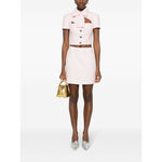 light pink tweed sequin embellishment check pattern high waist dart detailing full lining thigh-length concealed side hook and zip fastening Sequin checked tweed mini skirt Size and Fit - This piece fits true to size. We recommend you get your regular size. Model is 1,75m / 5ft 8in wearing size 40 (IT)