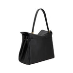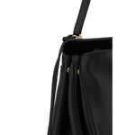 Balenciaga’s leather Rodeo Shoulder Bag features a top handle for a comfortable and stylish grip. The front closure features a flap and swivel, adding a distinctive and functional detail. Applied keychain detail on the top handle. The removable shoulder strap is attached by snap hooks, allowing it to be carried either on the shoulder or by hand. Inside, the bag offers single interior compartment, ideal for organizing essentials. In addition, there are metal feet at the base of the bag to protect it and keep it in place.