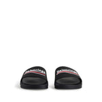 black embossed logo to the front slip-on style moulded footbed single toe strap round open toe flat sole We've partnered with Good On You — an independent agency that rates how brands perform in relation to their impact on the planet, people and animals, with a multi-criteria rating simplified to a five points scale. In order to be awarded our conscious label, larger brands need to score a minimum of four out of five ('Good'), while smaller brands must score at least three out of five ('It's a start'). This item comes from a brand rated four out of five ('Good') by Good on You at the time it was added on FARFETCH. Please note, this is a brand-level rating and does not guarantee that this product is made with conscious materials. Learn more about what makes a product Conscious on our Conscious Criteria page. Political Campaign pool slides Size and Fit - Heel 1,2 in / 3 cm; Platform 0,8 in / 2 cm