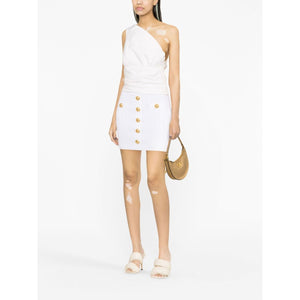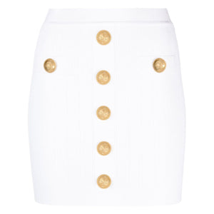 white ribbed knit high waist gold-tone buttons logo-embossed buttons rear zip fastening thigh-length straight hem Knitted mini skirt Size and Fit - This piece fits true to size. We recommend you get your regular size. Model is 1,75m / 5ft 8in wearing size 36 (FR)