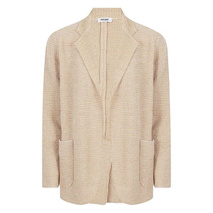 Beige jacket, long sleeves, without buttons, open, two patch pockets on the front, straight hem. Cotton blend blazer jacket Size and Fit - This piece fits true to size. We recommend you get your regular size. Model is 1,75m / 5ft 8in wearing size 40 (IT)