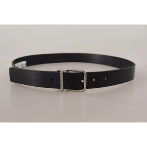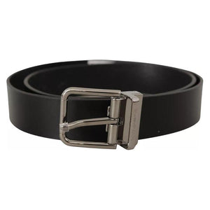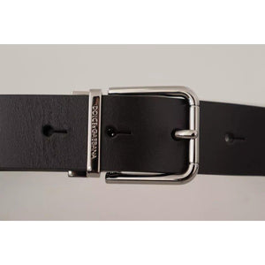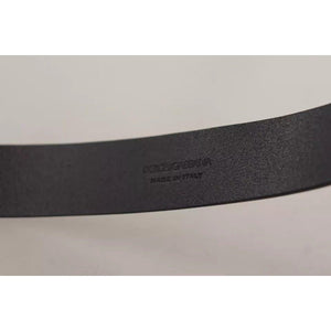 حزام دولتشي آند غابانا المصنوع من جلد العجل الأسود والمزين بإبزيم معدني منقوش عليه شعار