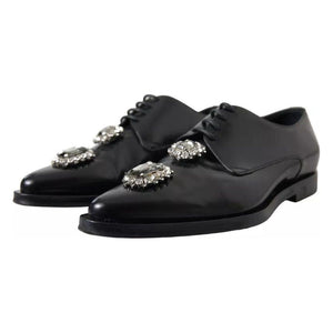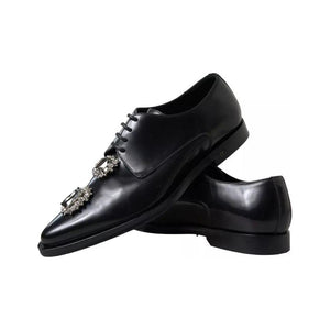 حذاء رسمي من دولتشي آند غابانا مصنوع من الجلد الأسود ومزين بالكريستال
