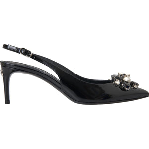 حذاء دولتشي آند غابانا المصنوع من الجلد الأسود اللامع والمزين بالكريستال