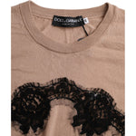 بلوزة رائعة مستعملة مع العلامات التجارية، مصنوعة من الصوف البني الأصلي 100% من دولتشي آند غابانا والدانتيل الأسود.