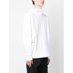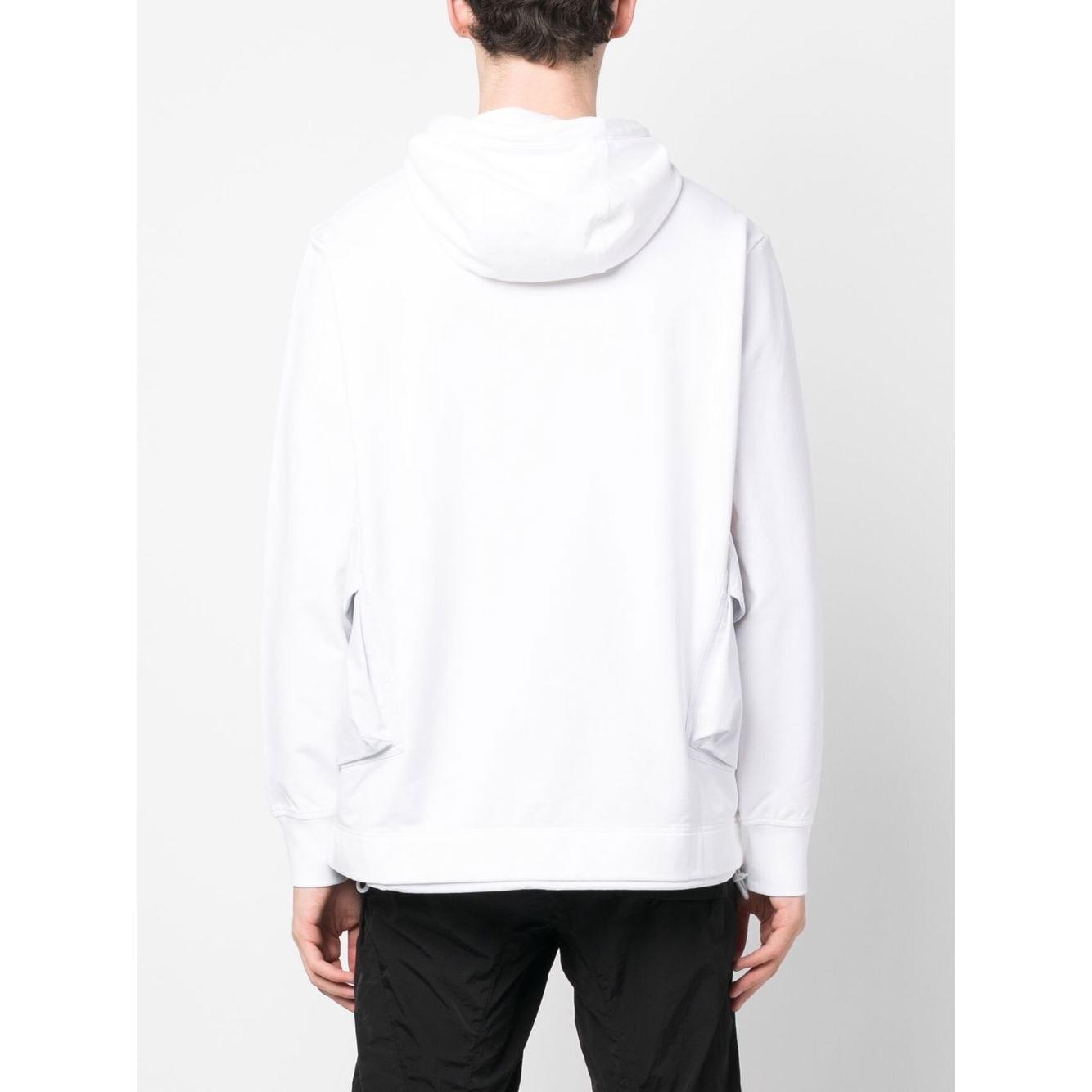 cargo-pocket high-neck hoodie from C.P. Company featuring white, stretch-cotton, two side cargo pockets, classic hood, high neck, long sleeves and straight hem. Logo hoodie Size and Fit - This piece fits true to size. We recommend you get your regular size. Model is 1,84m / 6ft 1in wearing size M
