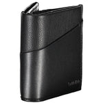 Elevate your essentials with the sleek sophistication of the Calvin Klein wallet. Crafted for the modern man, this elegant accessory features two compartments to organize your currency, a secure coin purse, and ample space for your cards. Enhanced with RFID blocking technology, it ensures your sensitive information stays private. Committed to sustainability, this wallet is made from 100% recycled polyester, pairing luxury with eco-consciousness. Its bold black hue and distinctly embossed logo make it a timeless statement piece.