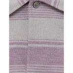 Polo Canali striped grey and purple short sleeve V-neck one button piquet cotton fabric