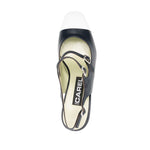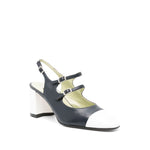 black/white nappa leather smooth grain round toe patent contrasting toecap double-strap design buckle-fastening ankle strap branded footbed 60mm patent block heel leather outsole Papaya leather slingback pumps Size and Fit - Heel 2,4 in / 6 cm