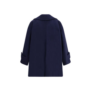 The Chloé oversized double breasted Wool Coat is a sleek, structured piece for the cold season. Featuring wide lapels and a collar strap, it is finished with engraved horn buttons at the collar, front and cuffs. Side pockets and a knee-length finish add functionality and sophistication to the design.