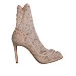 Dolce & Gabbana Beige Stretch Taormina Lace Boots Shoes