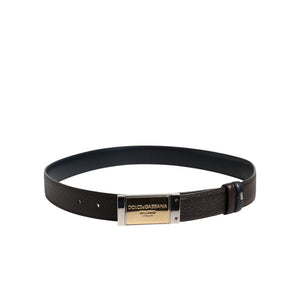 Dolce & Gabbana Black Blue Leather Gold Buckle Reversible Belt