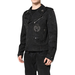 Dolce & Gabbana Black Brocade Cotton Full Zip Biker Jacket