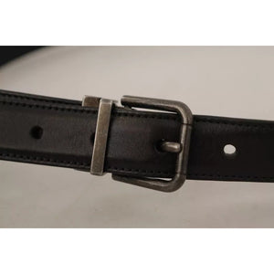 حزام دولتشي آند غابانا المصنوع من جلد العجل الأسود ومشبك معدني بشعار قديم