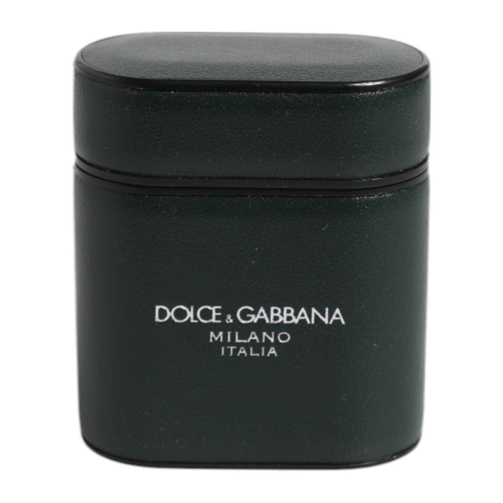 Dolce & Gabbana Black Calfskin Leather Logo Print Flip Holder Airpods Case