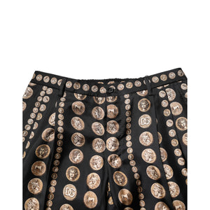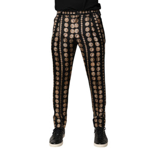Dolce & Gabbana Black Coin Print Silk Skinny Men Trouser Pants
