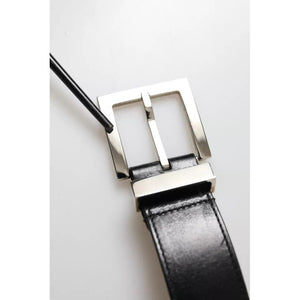 حزام دولتشي آند غابانا من الجلد الأسود باللون البيج مع مشبك معدني فضي