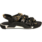 Dolce & Gabbana Black Leather Studded Slides Sandals Shoes