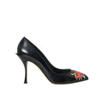 Dolce & Gabbana Black Leather WOW Patch Heels Pumps Shoes