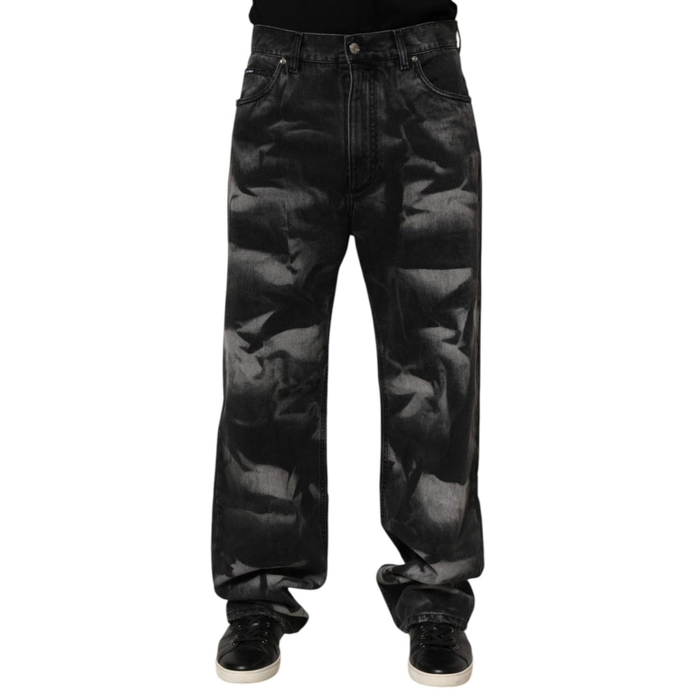 Dolce & Gabbana Black Marbled Effect Straight Men Denim Jeans