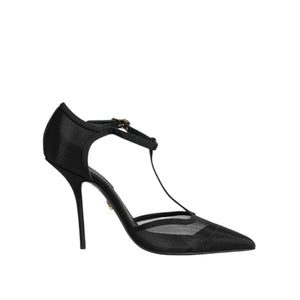 Dolce & Gabbana Black Mesh T-strap Stiletto High Heels Shoes