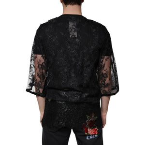 Dolce & Gabbana Black Nylon Floral Lace Crew Neck T-shirt