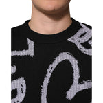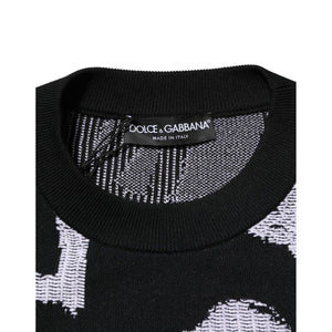 Dolce & Gabbana Black Nylon Wool Heart Print Pullover Sweater