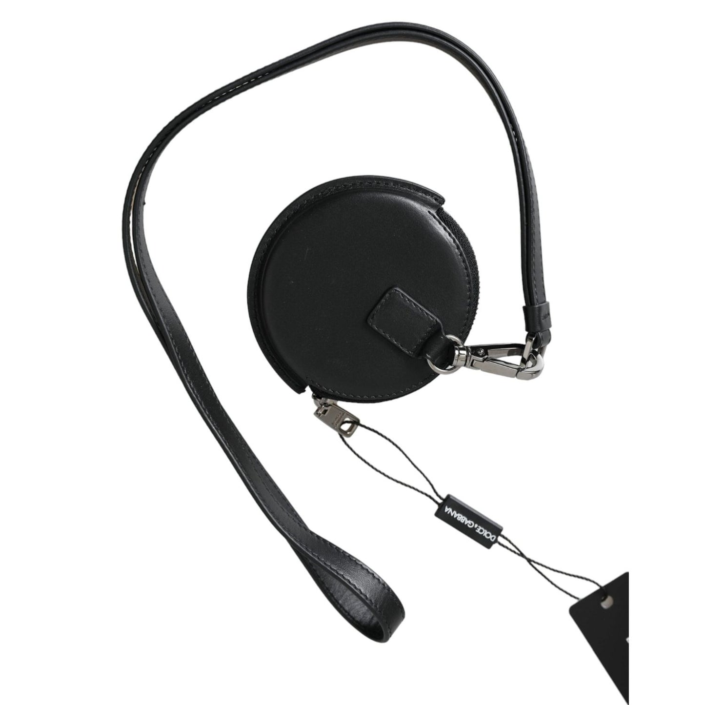 مذهلة للغاية، أصلية 100%، جديدة تمامًا مع علامات Dolce & Gabbana، محفظة دائرية من الجلد الأسود تتميز بشعار منقوش على الجزء الخلفي وفتحة لحمل العملات المعدنية وحبل تعليق.
