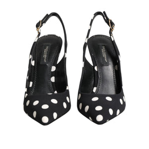 Dolce & Gabbana Black White Dotted Stiletto Slingback Shoes