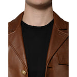 Dolce & Gabbana Brown Calfskin Leather Button Down Jacket