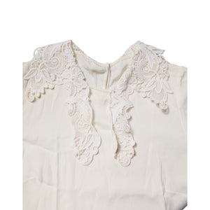 Dolce & Gabbana Cream Floral Lace Long Sleeves Blouse Top