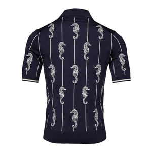 Dolce & Gabbana Dark Blue Sea Horse Collared Polo T-shirt