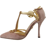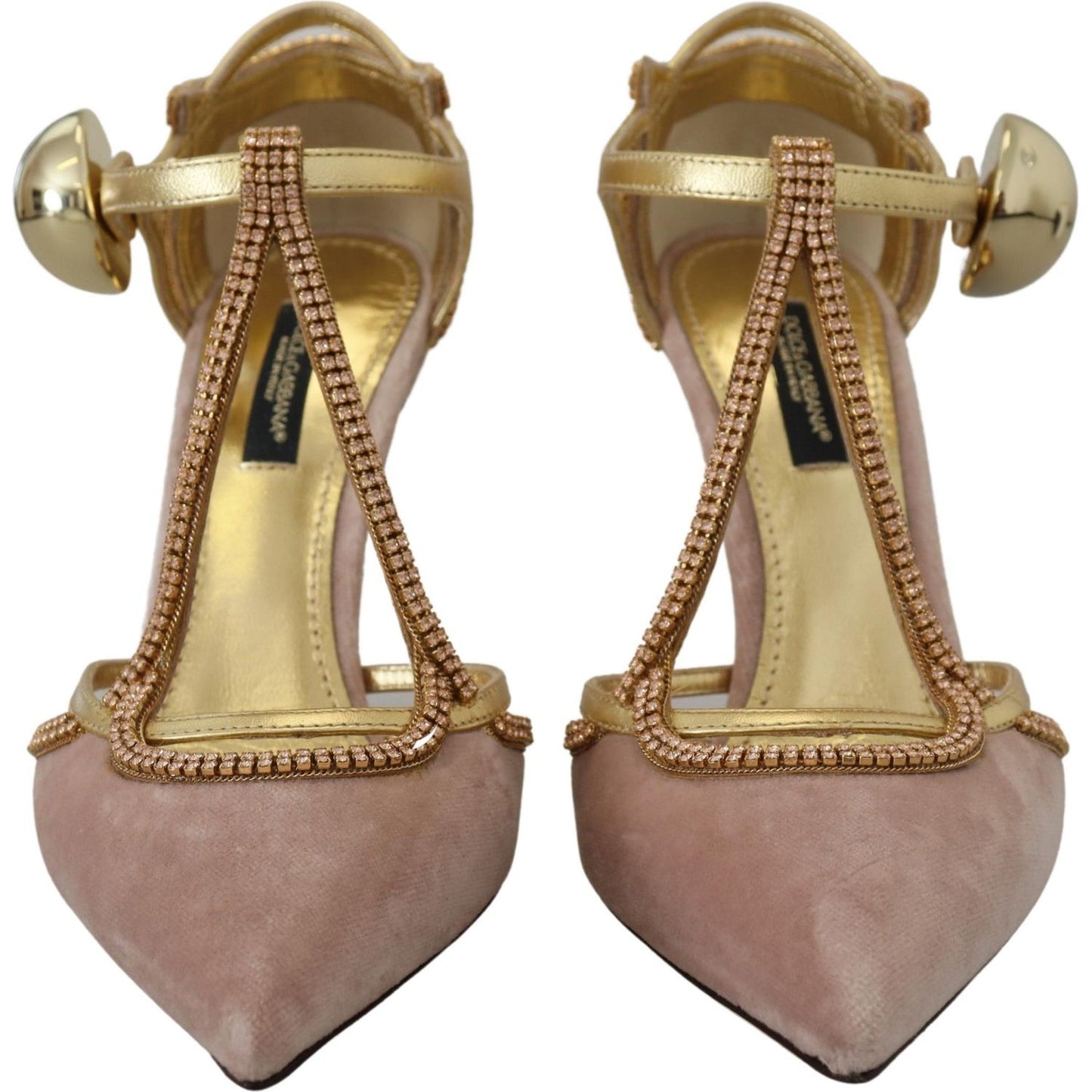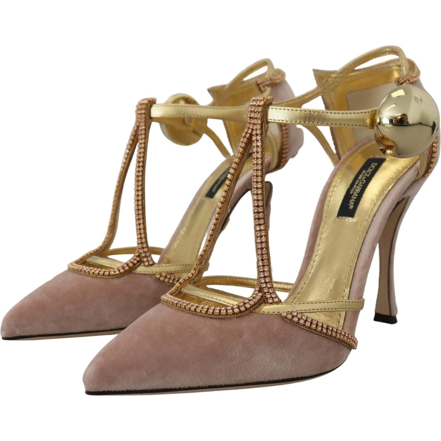 Dolce & Gabbana Pink Crystal T-strap Heels Pumps Shoes