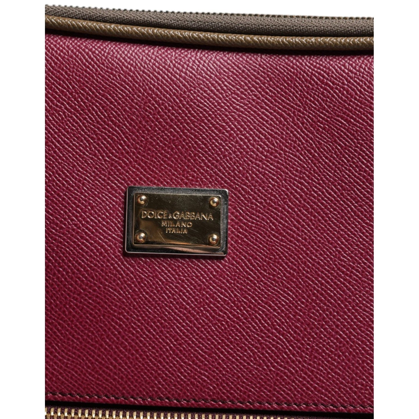 Dolce & Gabbana Fuchsia Khaki Leather Trolley Travel Wheel Suitcase Bag
