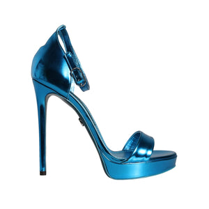 Dolce & Gabbana Metallic Blue Leather Keira Sandals Shoes