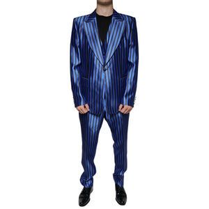 Dolce & Gabbana Metallic Blue Stripes Formal 3 Piece Suit