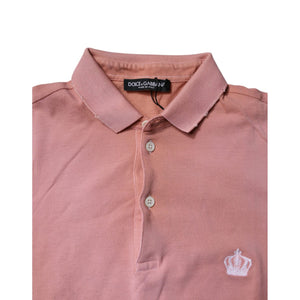 Dolce & Gabbana Pink Cotton Crown Collared Polo T-shirt