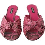 Dolce & Gabbana Pink Exotic Leather Kitten Heels Slides Shoes