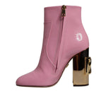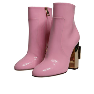 Dolce & Gabbana Pink Patent Leather Heel Mid Calf Boots Shoes