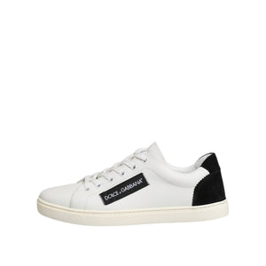 Dolce & Gabbana White Black Leather Low Top Sneakers Shoes