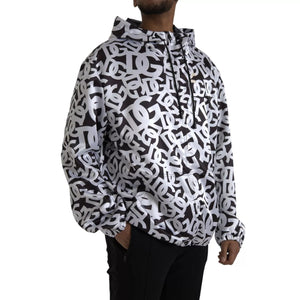 Dolce & Gabbana White Black Logo Hooded Full Zip Bomber Jacket