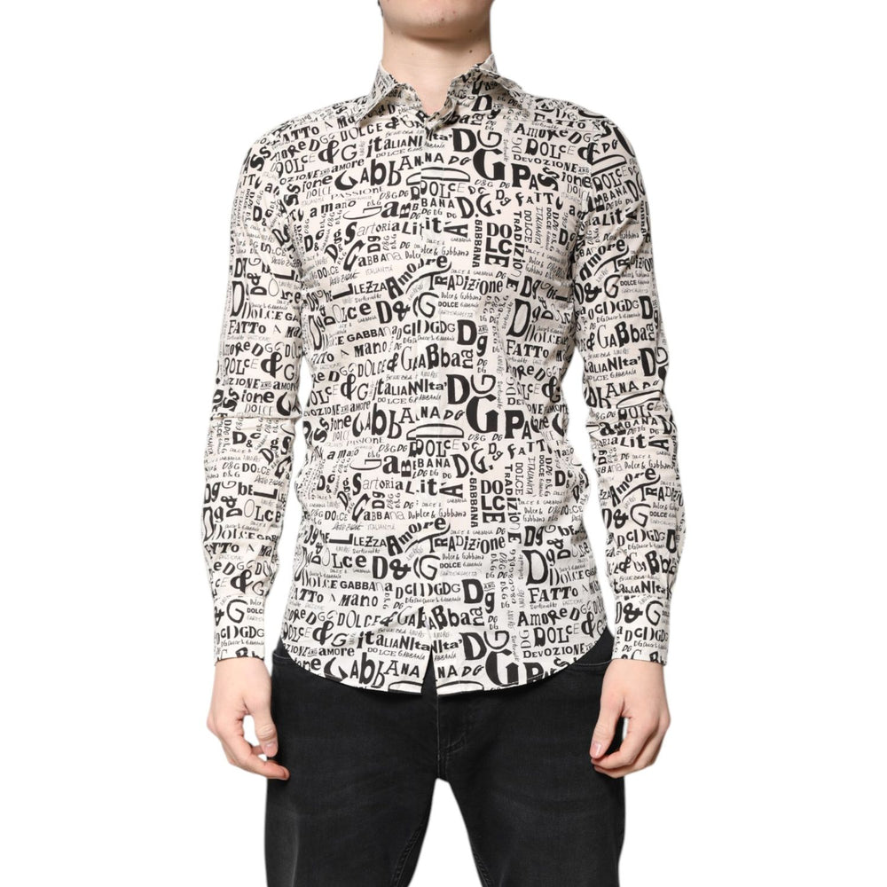 Dolce & Gabbana White Black Logo MARTINI Men Casual Shirt