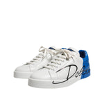 Dolce & Gabbana White Blue Low Top Leather Sneakers Shoes