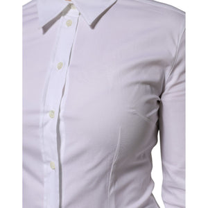 Dolce & Gabbana White Cotton Collared Long Sleeves Blouse Top