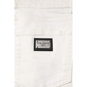 Dolce & Gabbana White Cotton Logo Plaque Slim Fit Denim Jeans