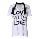 Gorgeous brand new, 100% Authentic Dolce & Gabbana t-shirt with wide ascot collar is made of thin jersey based on soft cotton and durable silk. The “I’m in love with love” print on the front shelf is a ready-made slogan for Instagram.