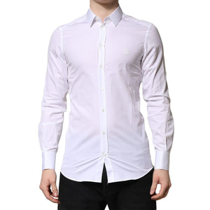 Dolce & Gabbana White GOLD Cotton Long Sleeves Men Formal Shirt
