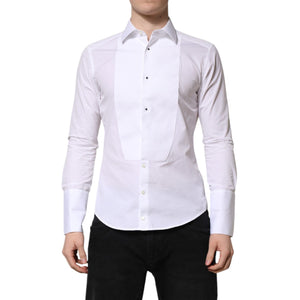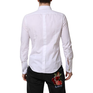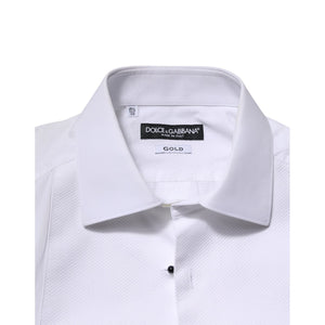 Dolce & Gabbana White GOLD Long Sleeve Dress Men Formal Shirt